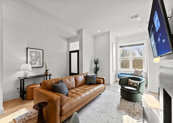 En la casa de vacaciones, estarás a unos 10 minutos en coche del Jardín Botánico de los Estados Unidos y a una distancia de 4 km del Centro John F. Kennedy para las Artes Escénicas. Entre los lugares educativos de los alrededores se encuentra la Universidad de Howard, situada a 1 km. Situada en el distrito Noroeste de Washington DC, la Historical Dc Luxury Home 5Br & 3 Ba Bloomingdale #Dcottage|Historical Dc Luxury Home 5Br & 3 Ba Bloomingdale #Dcottage está a unos 15 minutos en coche de lugares culturales como el Museo Nacional del Aire y el Espacio de Estados Unidos.